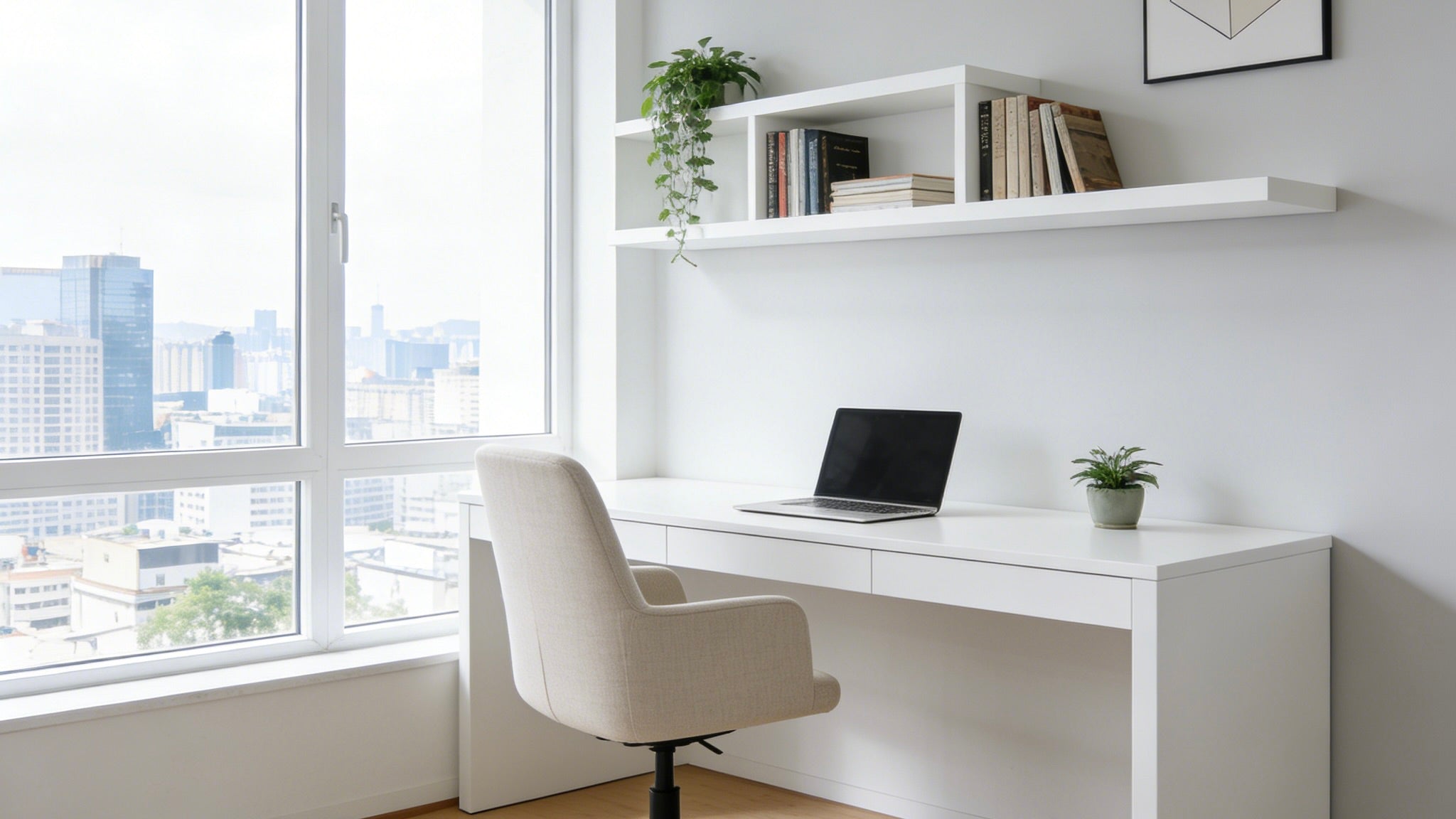 Desks, office chairs & shelves—matching sets for a neat and efficient work/study space.