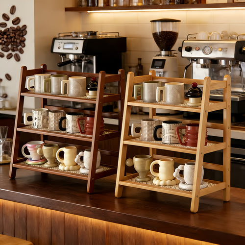 Two-Tier Wooden Storage Rack | Trapezoidal Desktop Organizer, Multipurpose Countertop Shelf for Kitchen -
