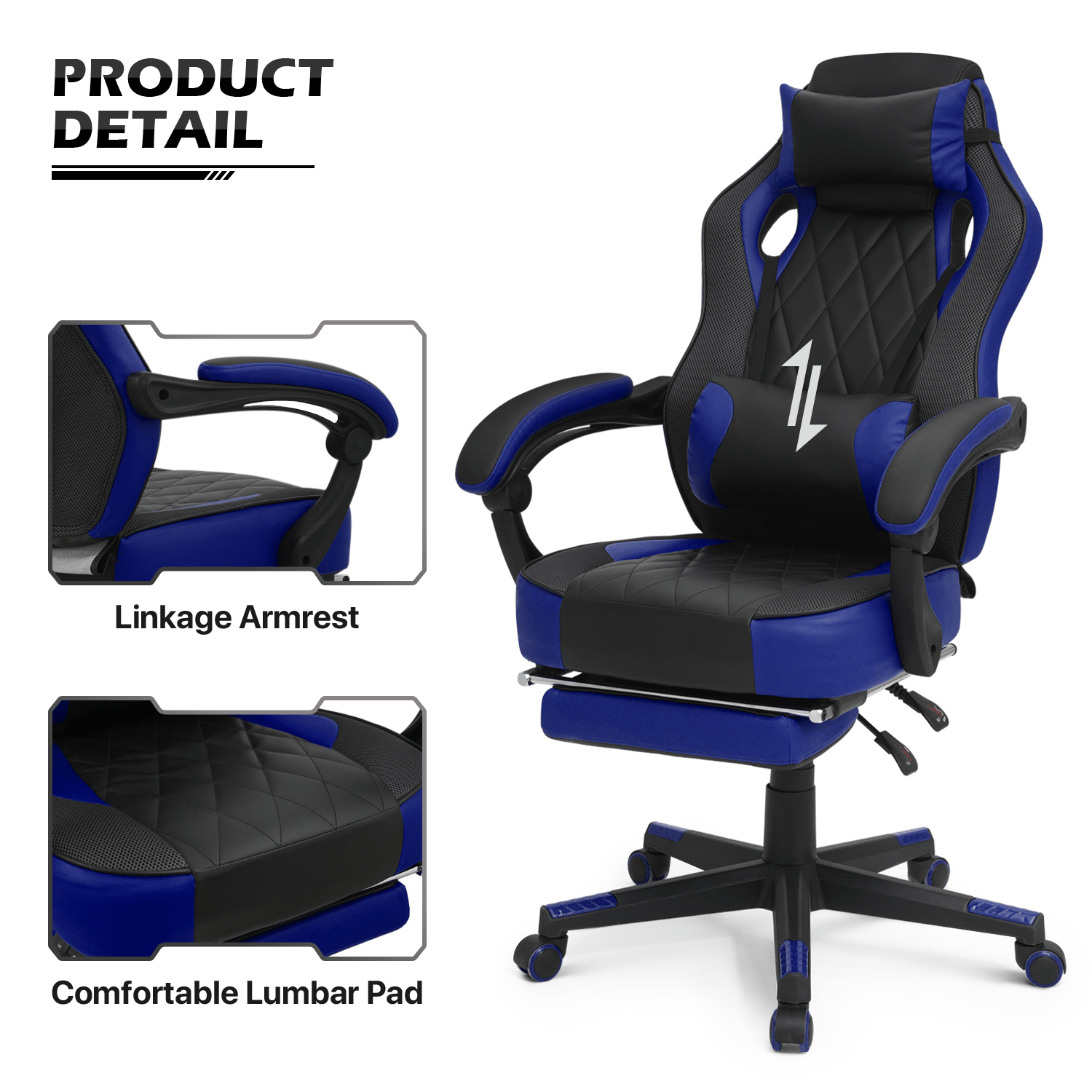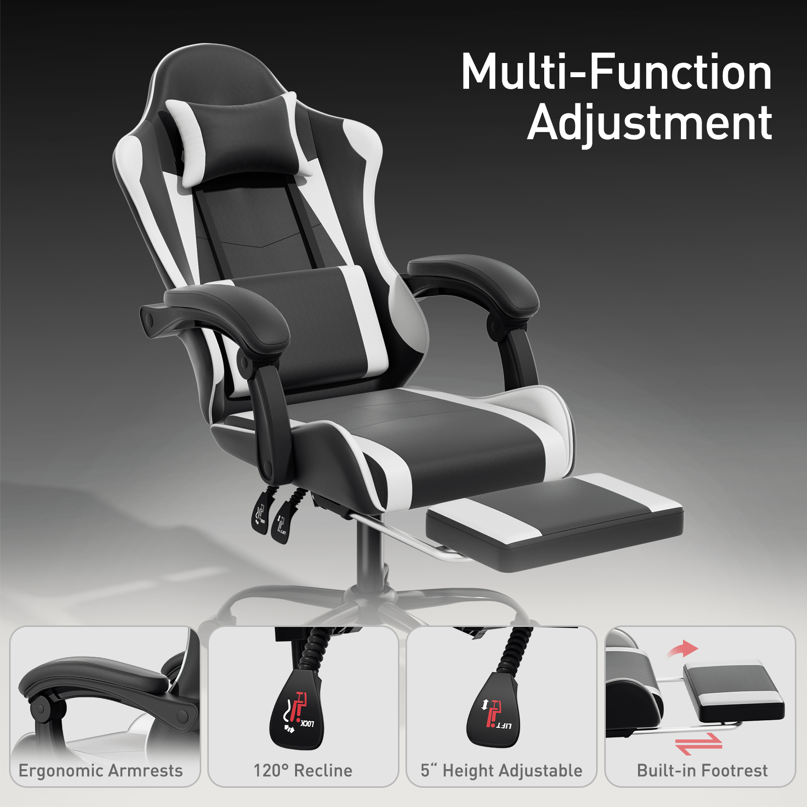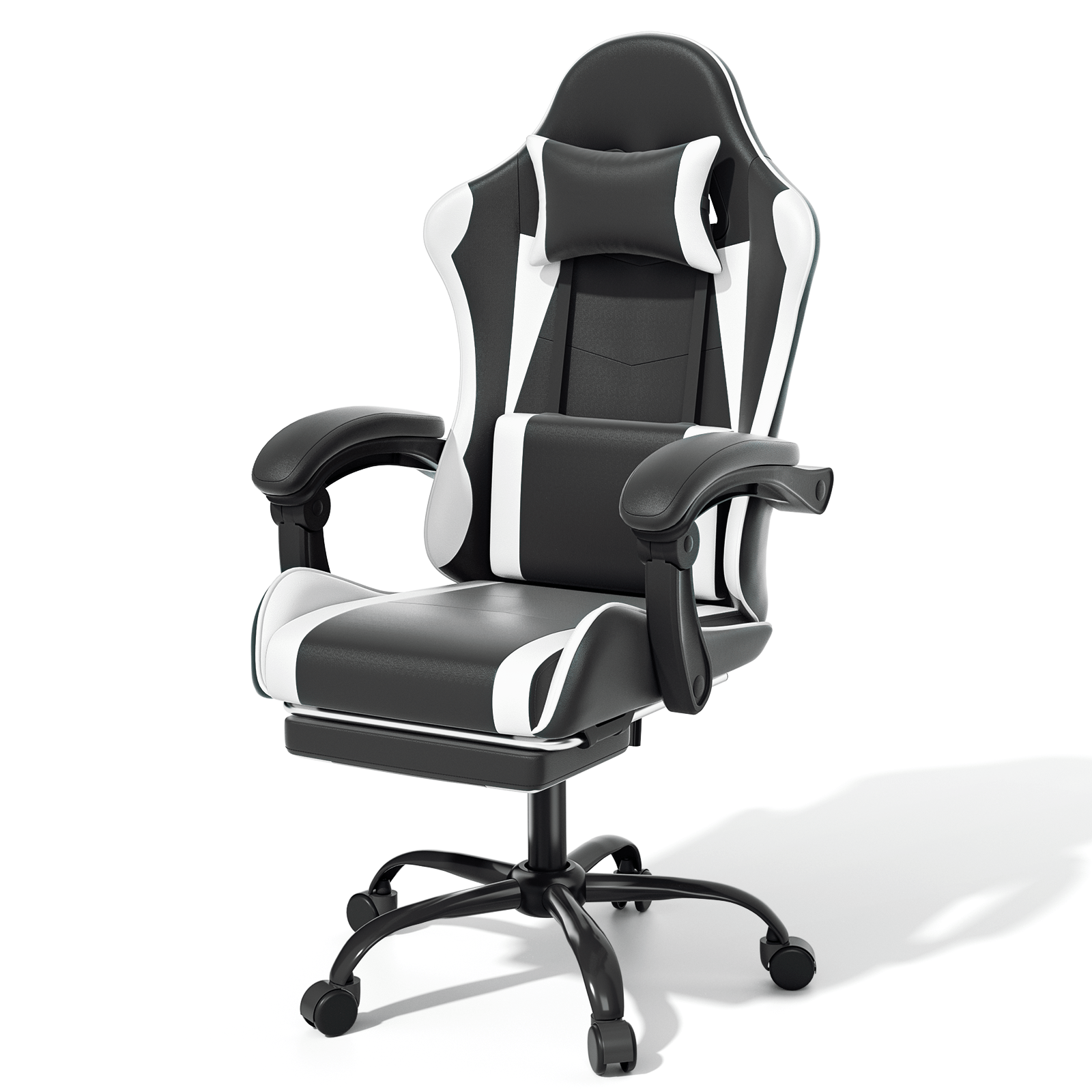 Ergonomic Gaming Chair with Retractable Footrest & Detachable Lumbar Support 360