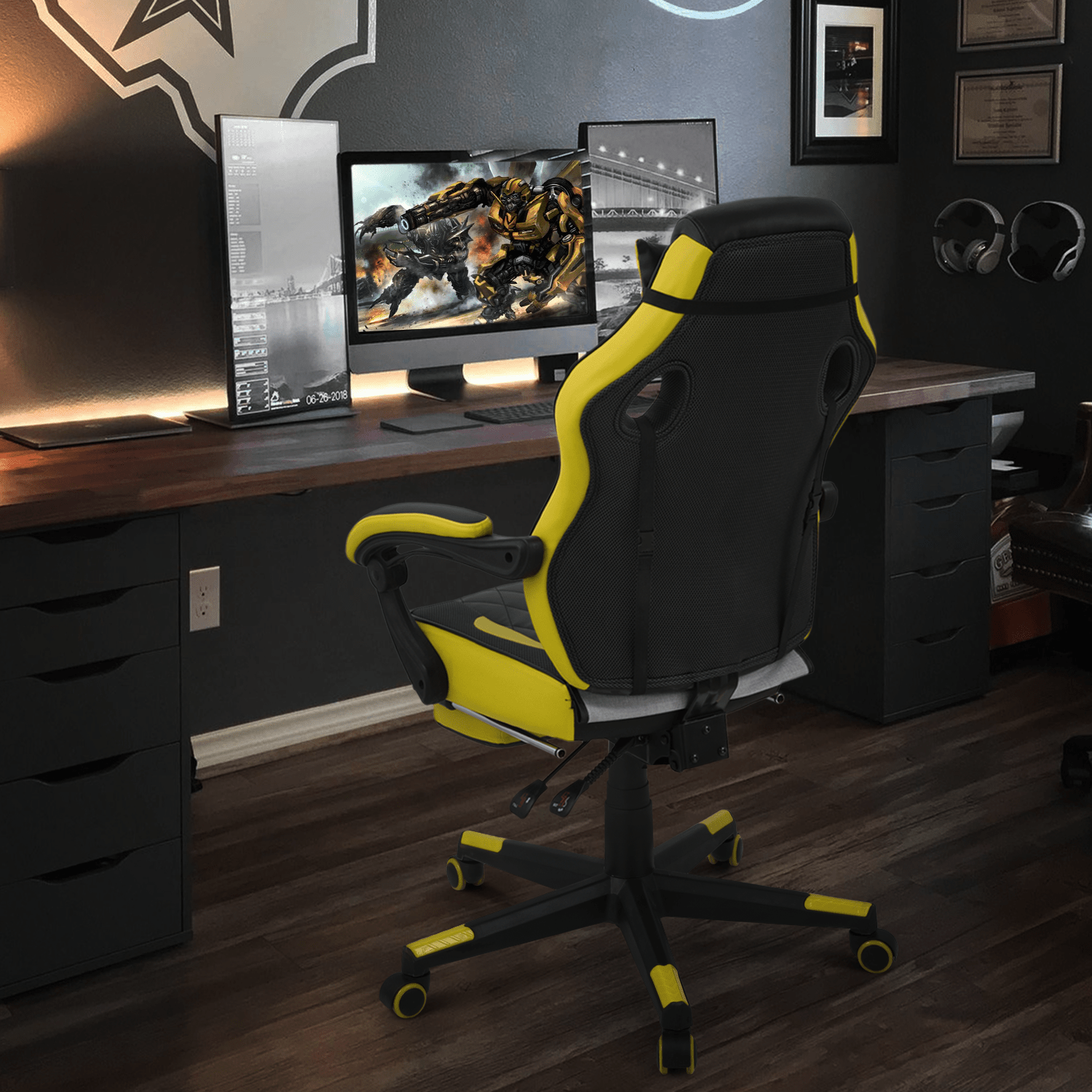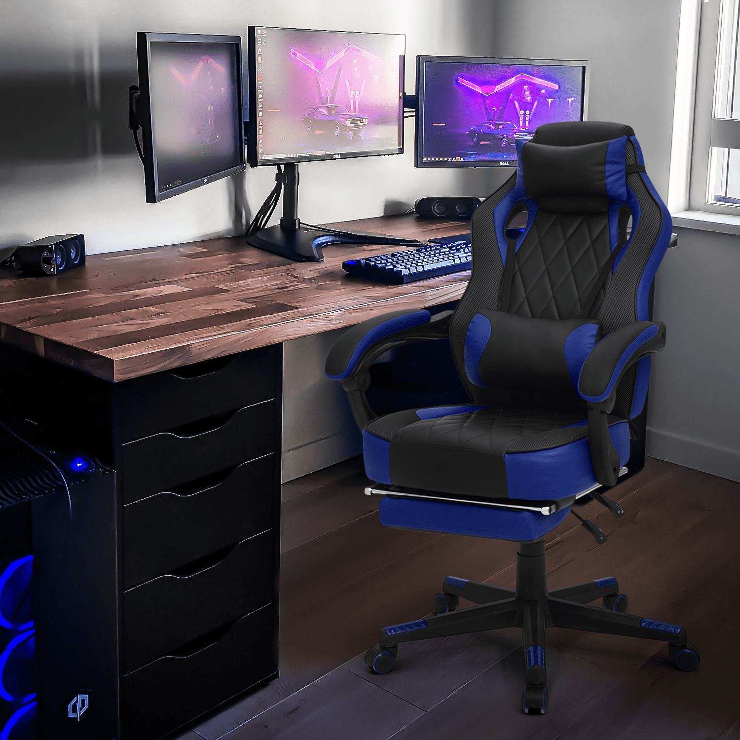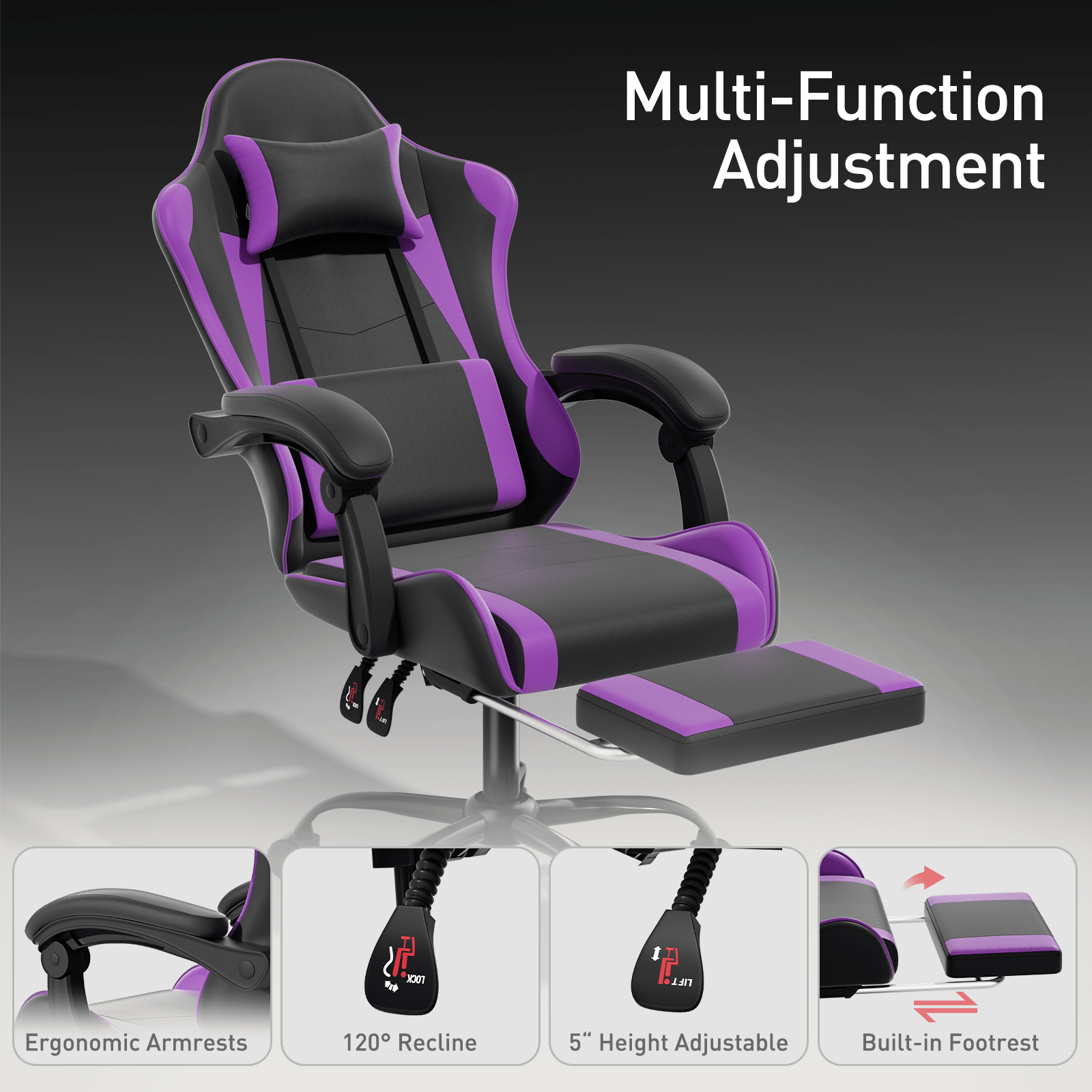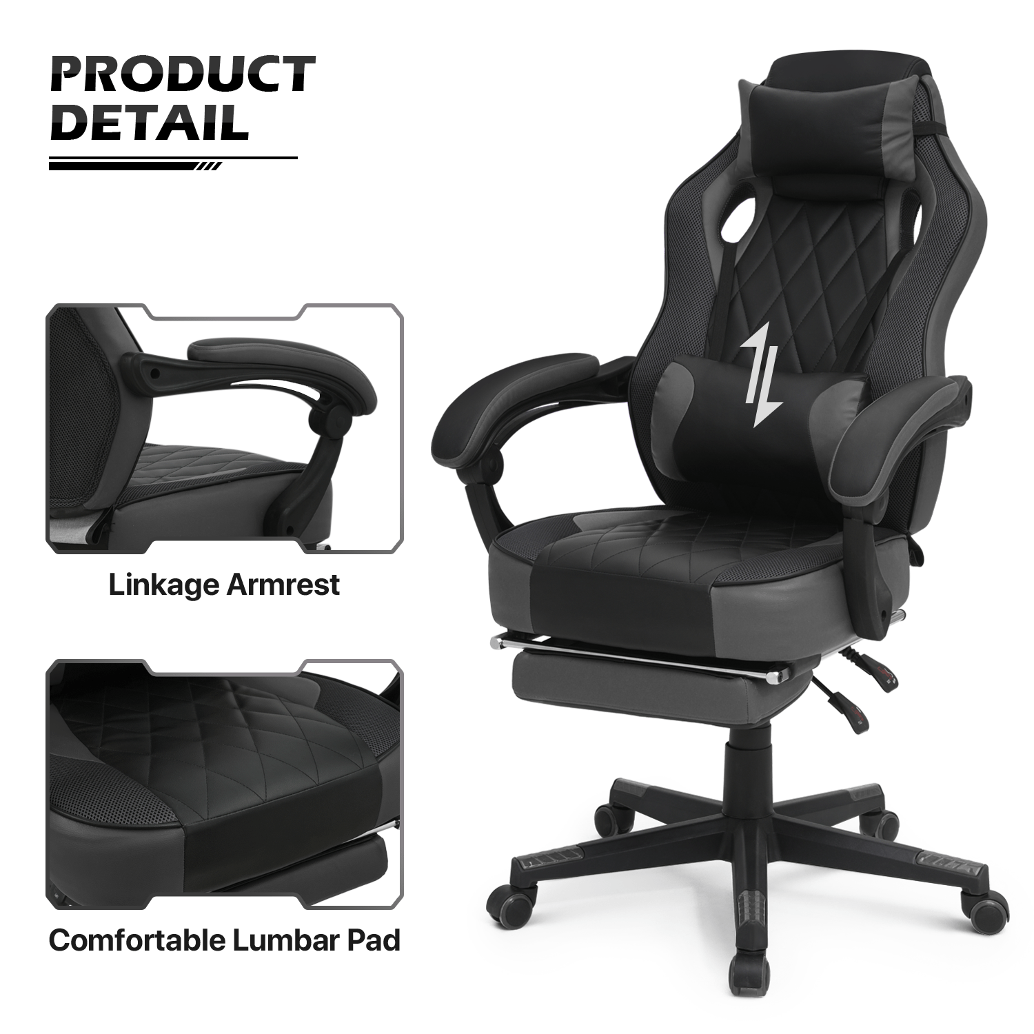 Ergonomic Gaming Chair with Retractable Footrest & Detachable Lumbar Support 360