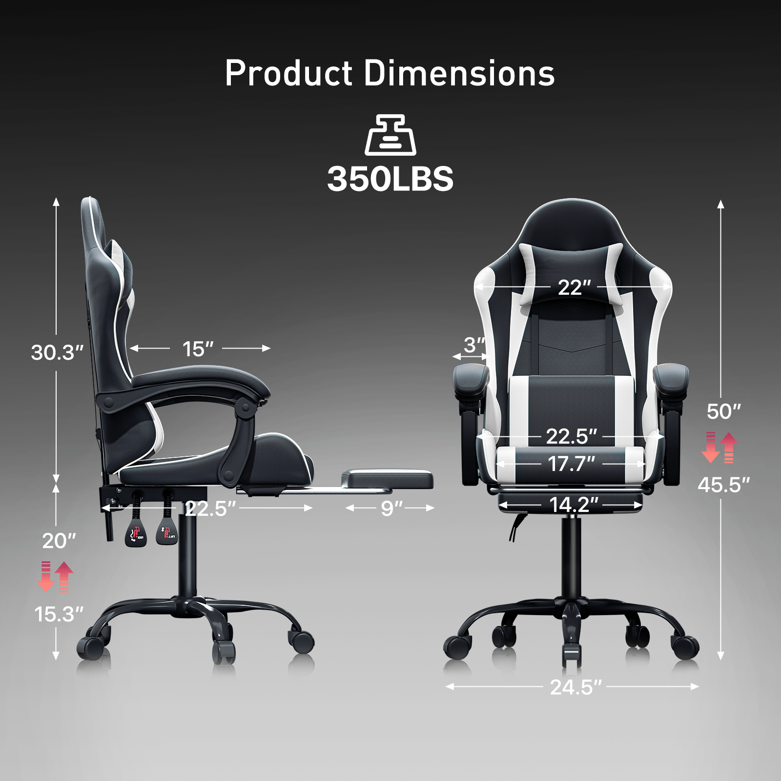 Adjustable Seatback and Footrest - The chair can be laid flat at 145 degree maximum and match up the extending footrest to enjoy comprehensive support for your head. shoulders. back. and legs.